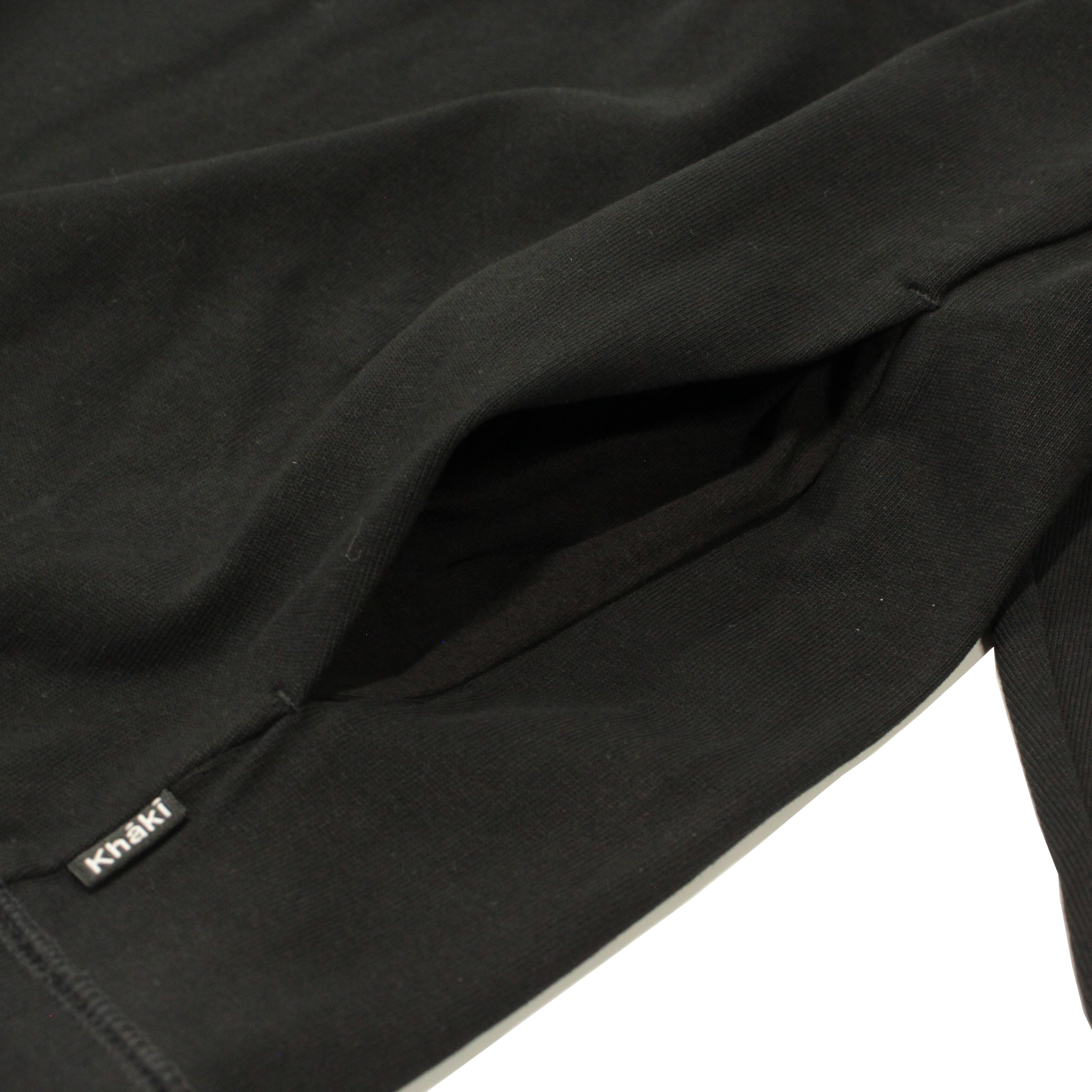 動きやすいビックシルエット、サイドポケット付き、胸元には[khaki]の刺繍ワッペン、ワードローブに加えたい普遍的なアイテム。